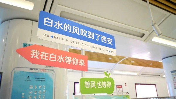 8月18日,白水文旅品牌宣傳活動西安地鐵14號線、2號線“白水特色產業超級品牌專列”啟動,車廂內,白水蘋果、倉頡廟、酒圣杜康酒,以“一廂一景”的設計思路沉浸式呈現各品牌要素,全方位地展示白水特色產業的蓬勃活力與文化魅力。