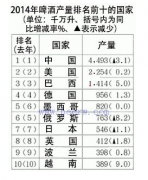 2014年全球啤酒產量19100萬千升,減少0.5% 日期:2015-08-12 08:21:00