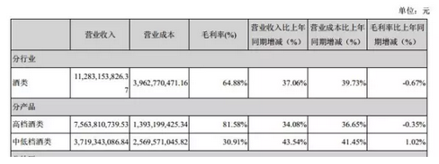而從今年一季報看出,瀘州老窖一季度毛利率70.25%,同比增長12.9%,創歷史新高,而這與高端持續放量、低端產品仍在調整有關。