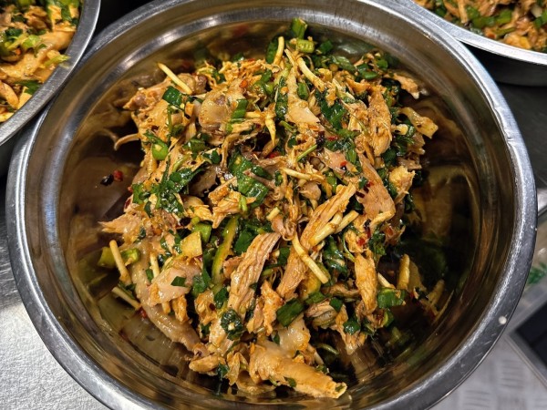 云南景頗族的“鬼雞”也別有風(fēng)味。檸檬對半切開,汁水“滋啦”一聲澆在撕碎的雞肉上,瞬間激起一陣清香。小米辣切圈,芫荽切段,一起拌進雞肉里。檸檬汁像一把小刷子,把雞肉的纖維輕輕刷開,每一口都帶著雨林的清新,仿佛能聽見遠處山泉的叮咚。