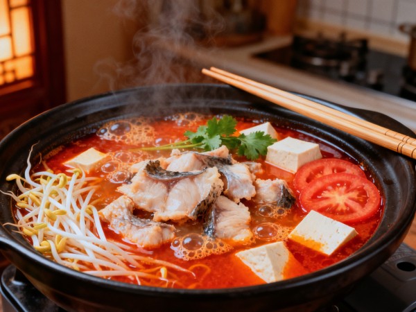 貴州的酸湯魚講究一個原生態(tài)。稻花魚是喝稻田水長大的,魚肉自帶甜味。紅酸湯用毛辣角(當(dāng)?shù)匦》?剁碎,加米湯發(fā)酵,表面浮著一層白膜,像酵母菌的被子。