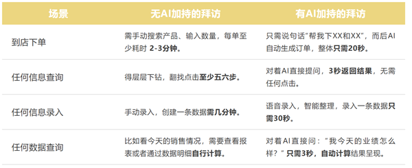 通過以上介紹,相信大家已經切身感受到了AI訪銷大腦給業代人員帶來的改變,下面用一個表格重點呈現對比。